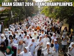Contohnya kampanye di lapangan parkir Taman Makam Pahlawan Kalibata hari ini. Dipimpin Calon Legislatif (Caleg) DPRD DKI Jakarta Daerah Pemilihan (Dapil) VIII Prima Kumara, para simpatisan dan kader PKS beramai-ramai melakukan jalan sehat mengelilingi Taman Makam Pahlawan Kalibata.